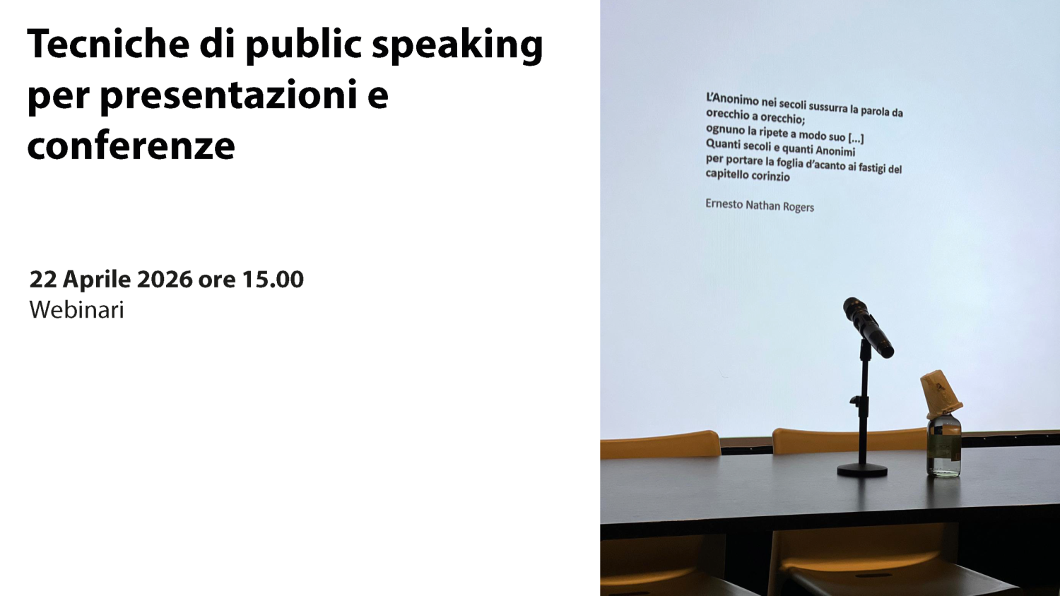 22/04/2026 Tecniche di public speaking per presentazioni e conferenze