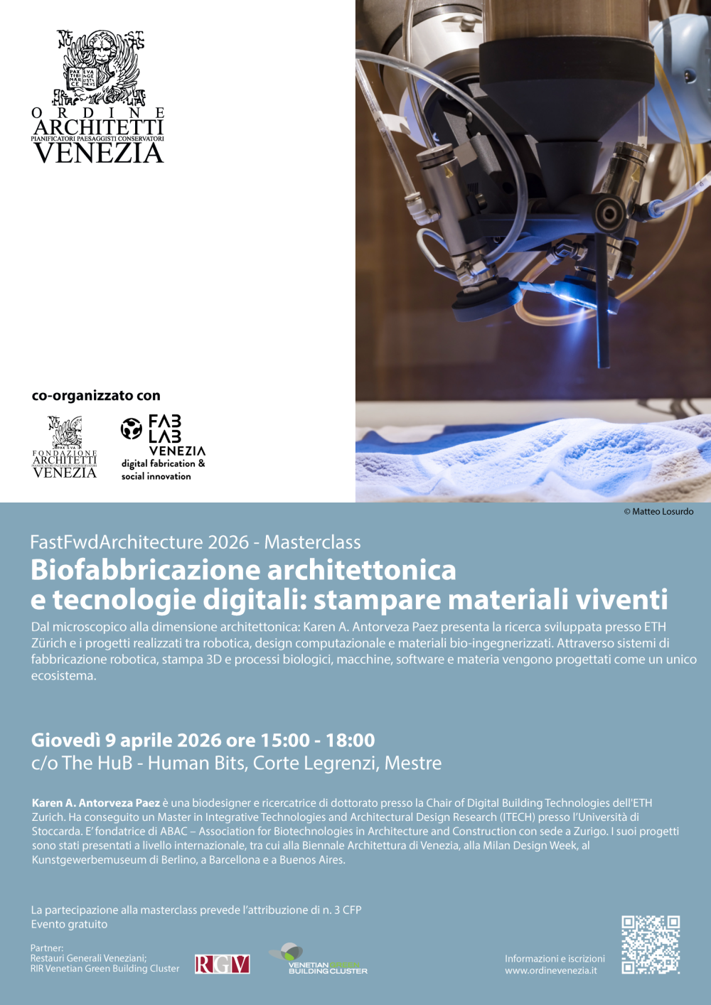 FastFwdArchitecture 2026 / Masterclass Biofabbricazione architettonica e tecnologie digitali: stampare materiali viventi